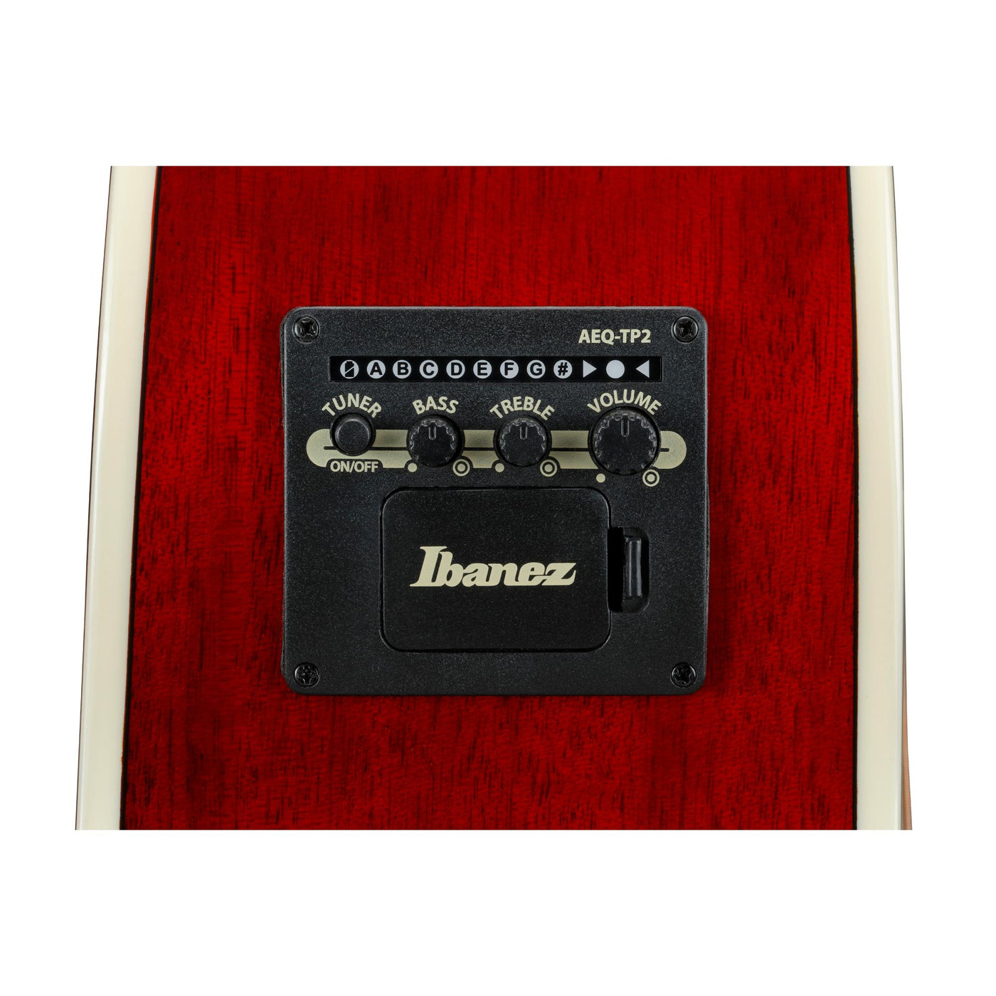 The Ibanez AEQ-TP2 preamp provides the extra punch of on-board EQ along with a convenient and easy-to-read digital tuner and 2-band EQ, located on the instrument’s upper bout.