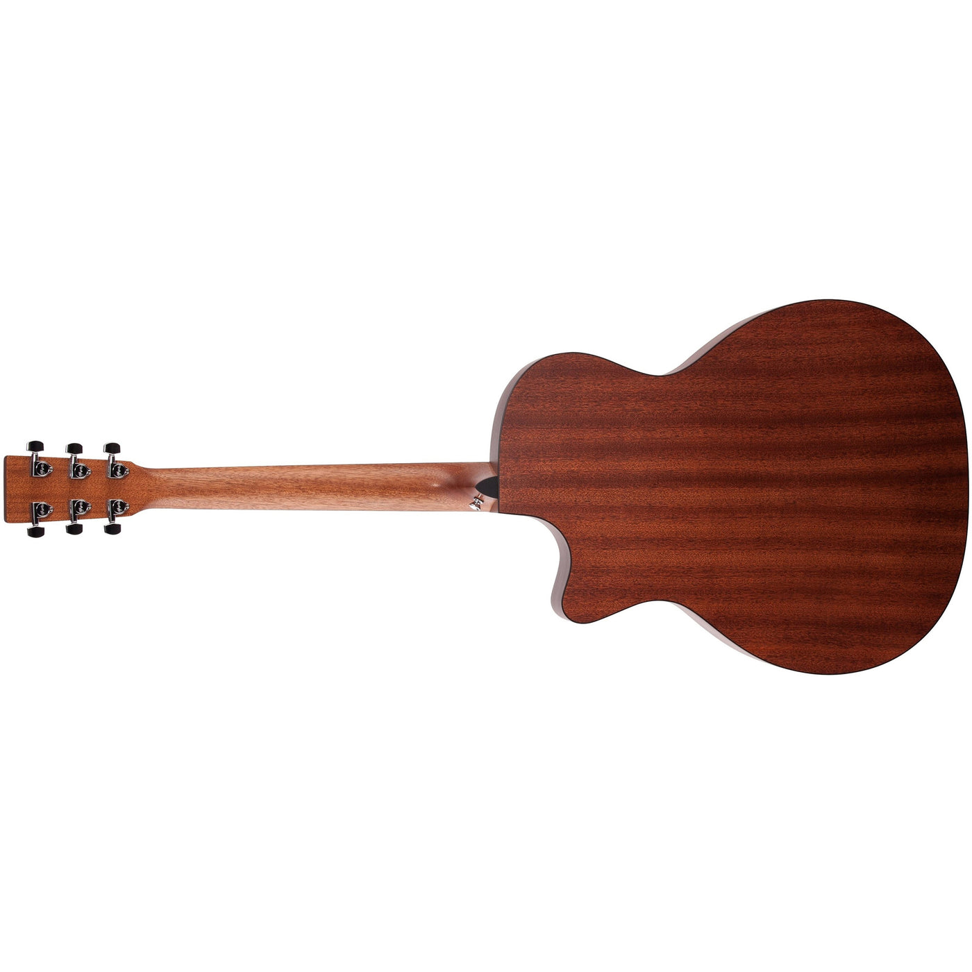 With a gorgeous glossed spruce top and sapele back and sides, this solid wood Grand Performance model with cutaway is a great sounding guitar at an affordable price. New to this model are stunning mother-of-pearl pattern fingerboard and rosette inlays with a multi-stripe rosette border. It has an FSC Certified Richlite fingerboard and bridge, satin finish body, and a hand-rubbed neck finish. Also new to this model is the Martin E-1 electronics package with a built-in soundhole tuner so you can tune up any time without using a pedal. This guitar comes with a Premium Soft Shell Case so it is Road-ready to join you on all of your adventures!