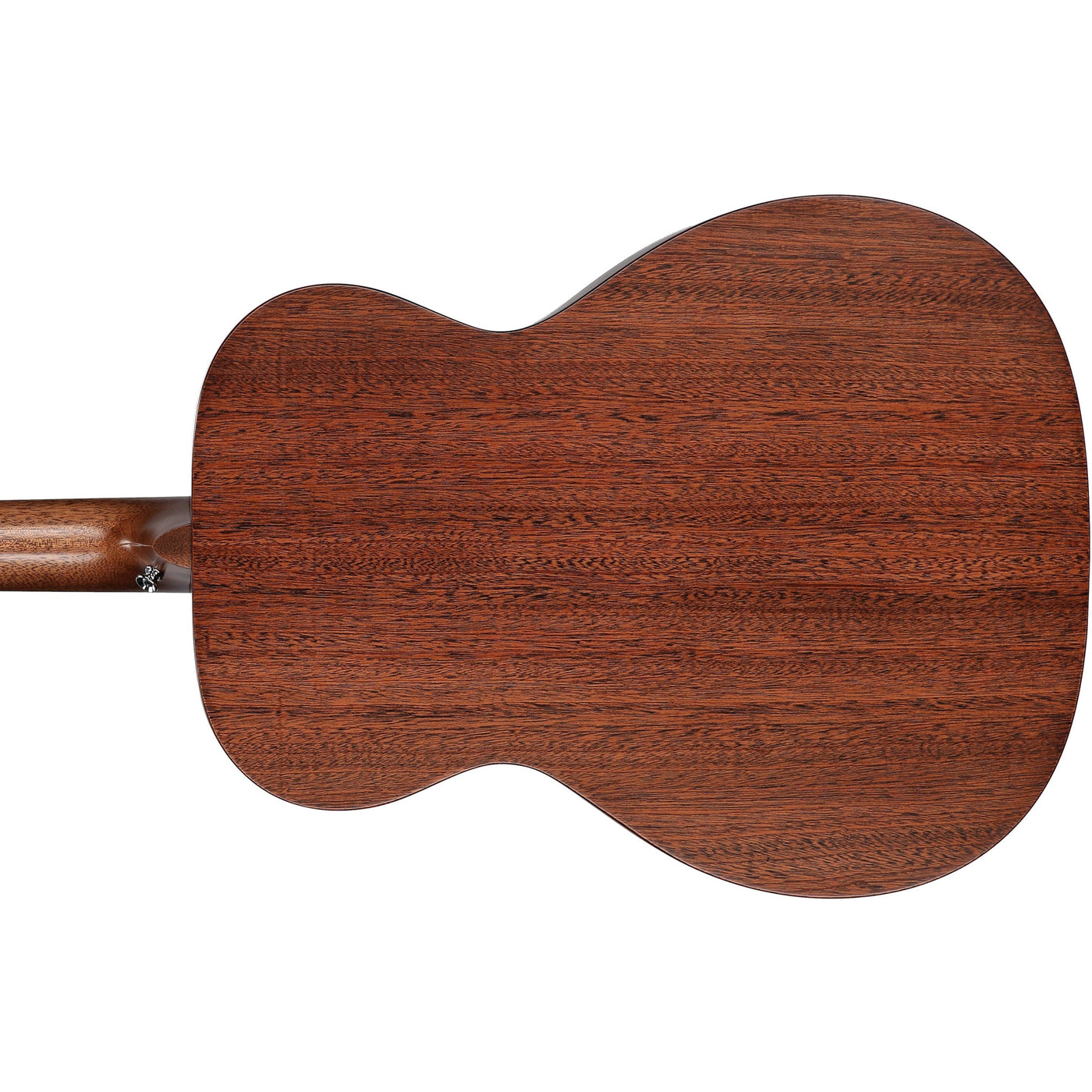 Featuring an exquisite satin-finished body, it delivers more than just looks. Its mahogany top produces a warm, woody tone with a pronounced midrange, complemented by sapele back and sides for some added punch with bright and airy trebles.