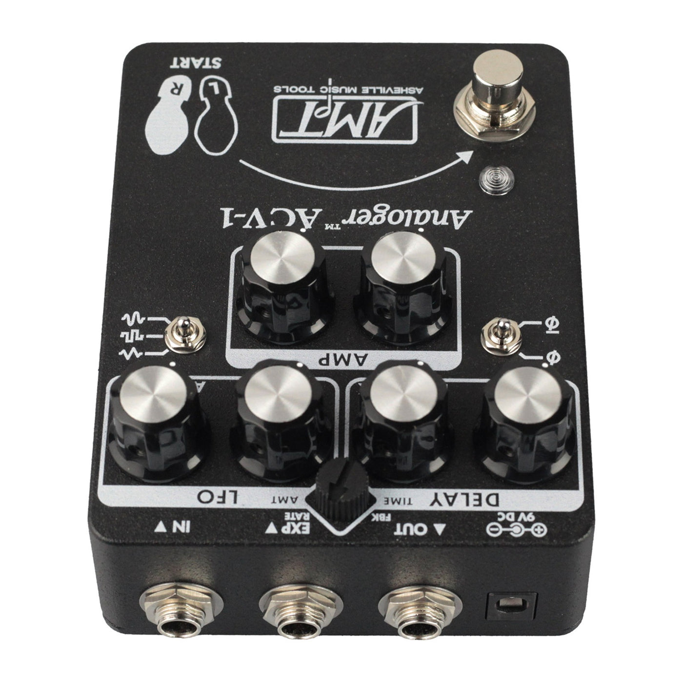 The Analoger Series ACV-1 is AMT's latest creation in 100% analog flexible chorus/vibrato/slap back modulation effects. The ACV-1 consists of a modulated BBD delay line with a flexible supporting cast of synthesizer-inspired controls. On the surface, the ACV-1 is simply a highly tweakable classic chorus. In reality, it is a veritable powerhouse of time warping modulation effects: shimmering comb filter swirls, luscious true pitch vibrato, glitchy textures, ringing metallic pipe tones, and even a faux reverb.