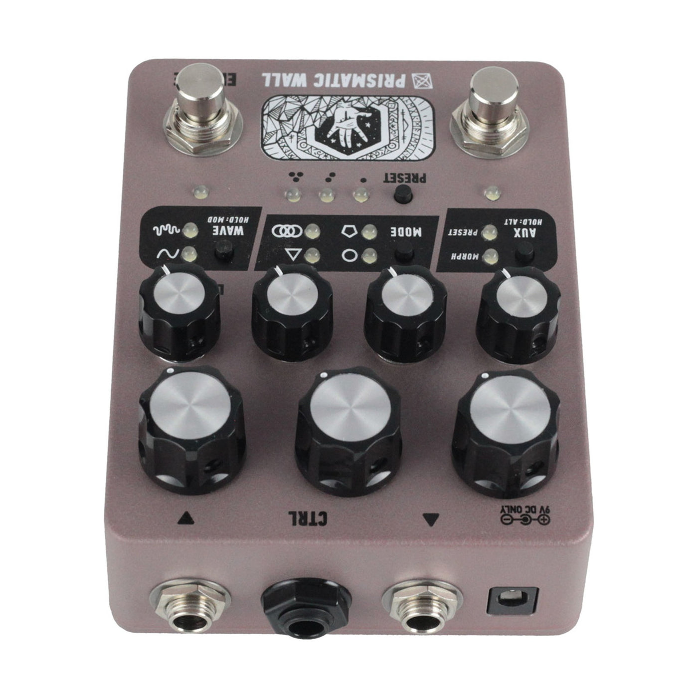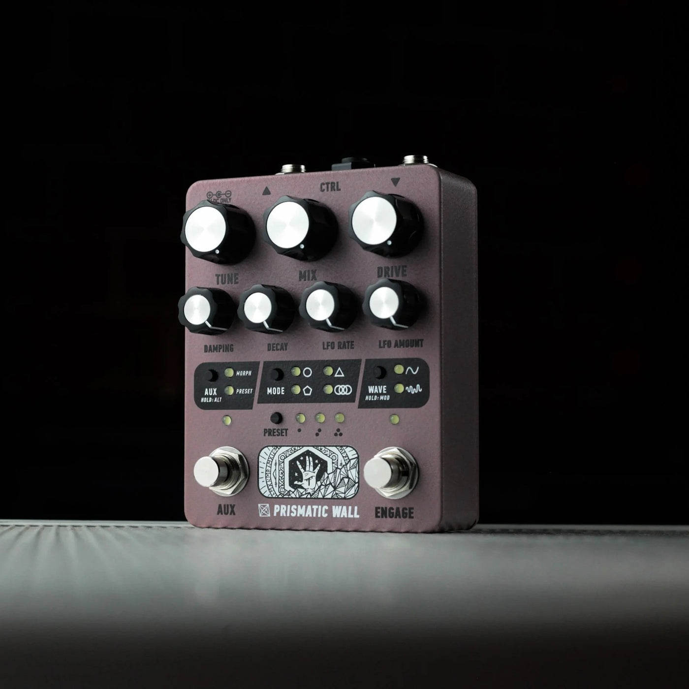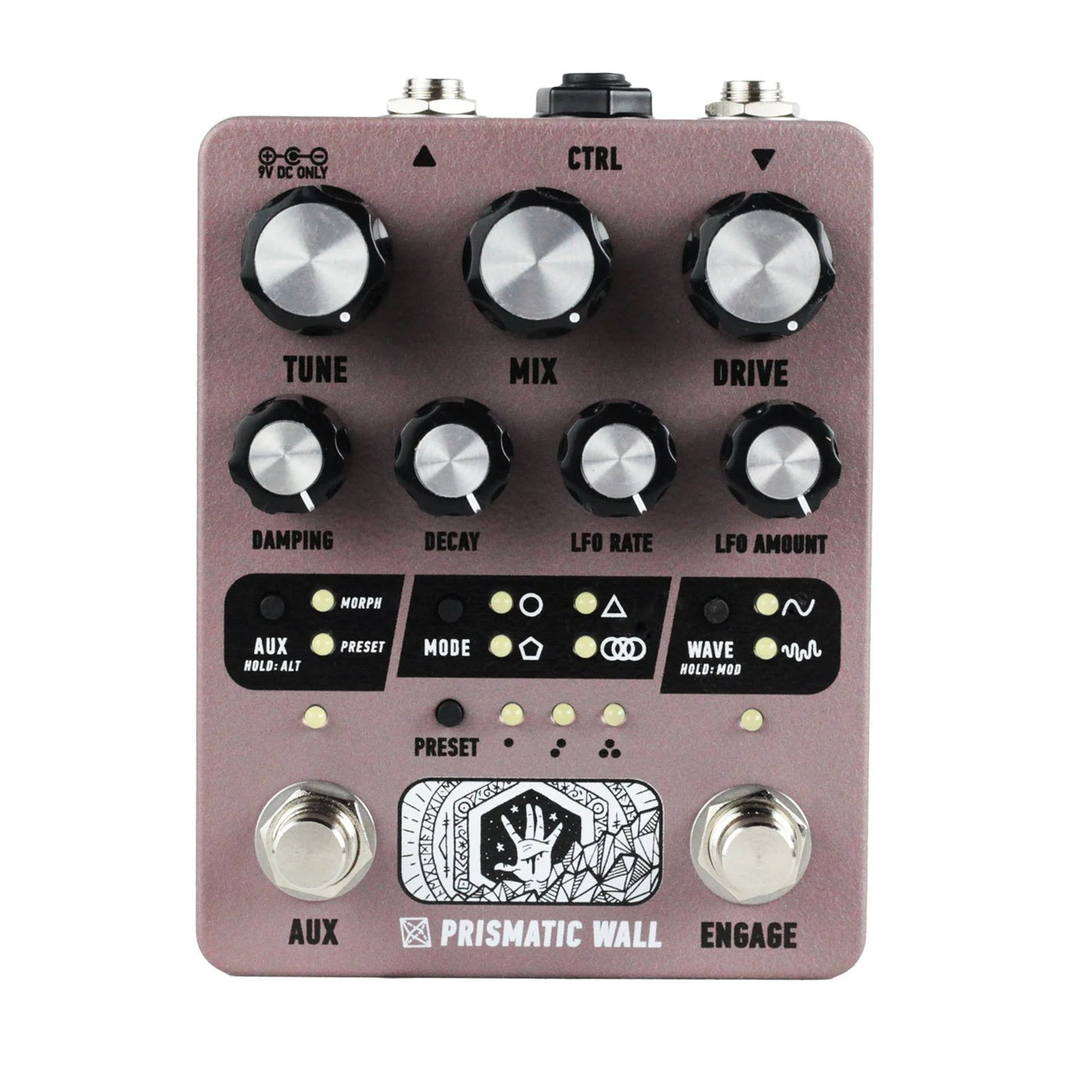 The hardware combines primitive DSP with analog saturation and filtering for a sonic character untethered from a particular era. A fully digital user interface enables all parameters to be controlled via MIDI, saved as presets, and even modulated by the onboard LFO. In addition, the Morphing function enables controllable transitions between two distinct settings via the Aux footswitch or an expression/CV source.
