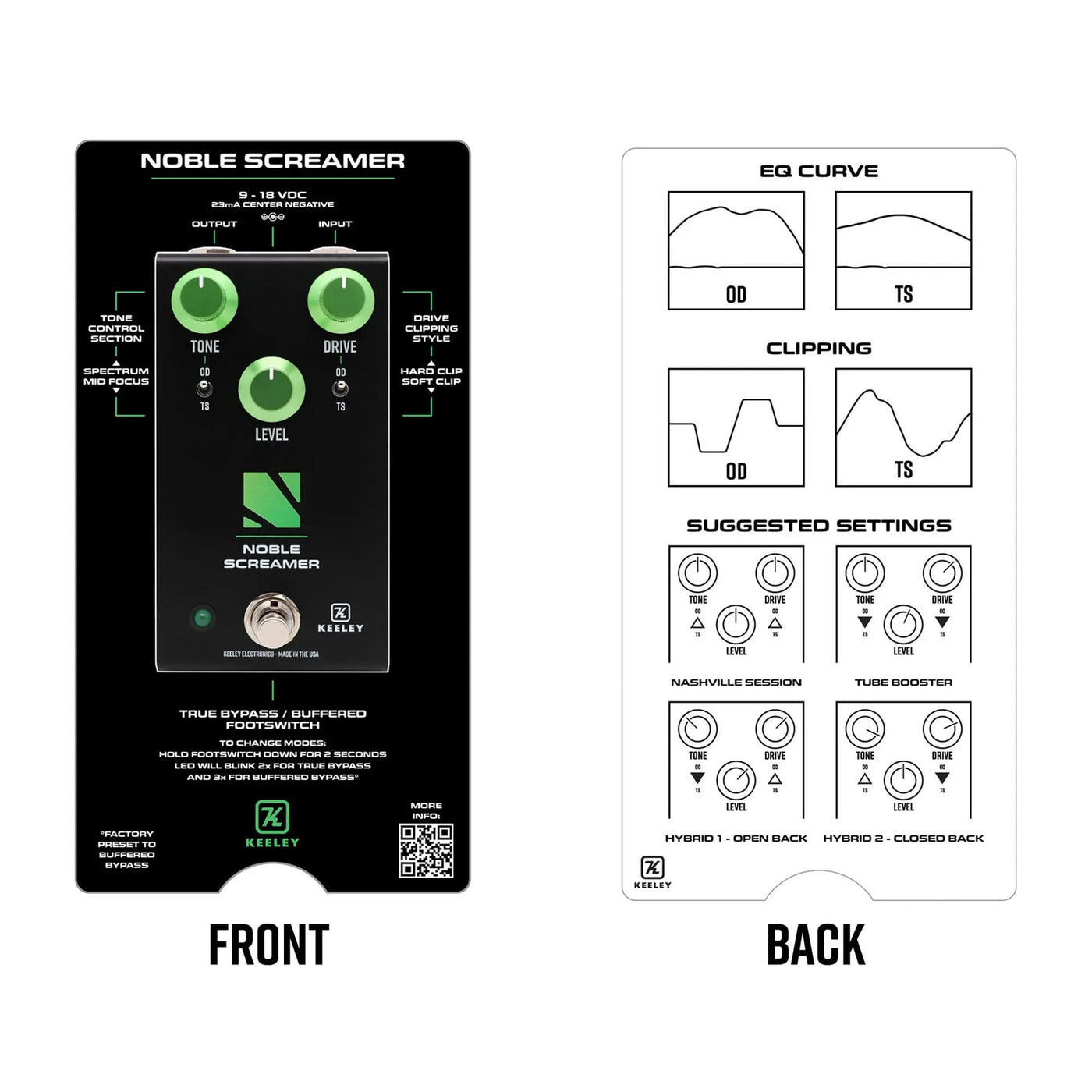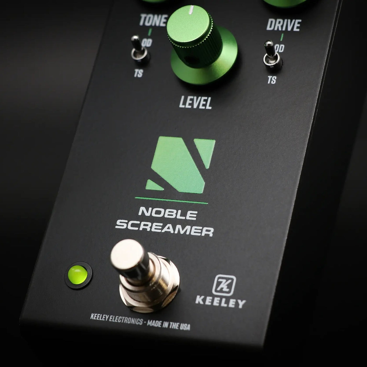 Designed, engineered, and manufactured in Oklahoma City. Everything about the Noble Screamer is geared towards the professional musician and their quest for an inspiring tone when the performance demands it. From the inside of the pedal and its meticulously built circuit boards and metal construction audio jacks to the outside of the effect its newly fabricated aluminum enclosure; Keeley makes guitar effect pedals to be finely crafted musical instruments.