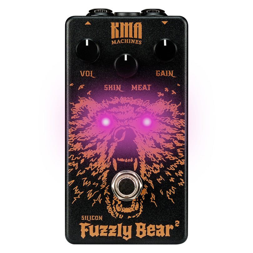 With FUZZLY BEAR 2, KMA Machines put our now classic re-imagined fuzz into a modern, more pedal board friendly enclosure with top mounted jacks, enhanced it with relay-based silent switching and improved electronics.