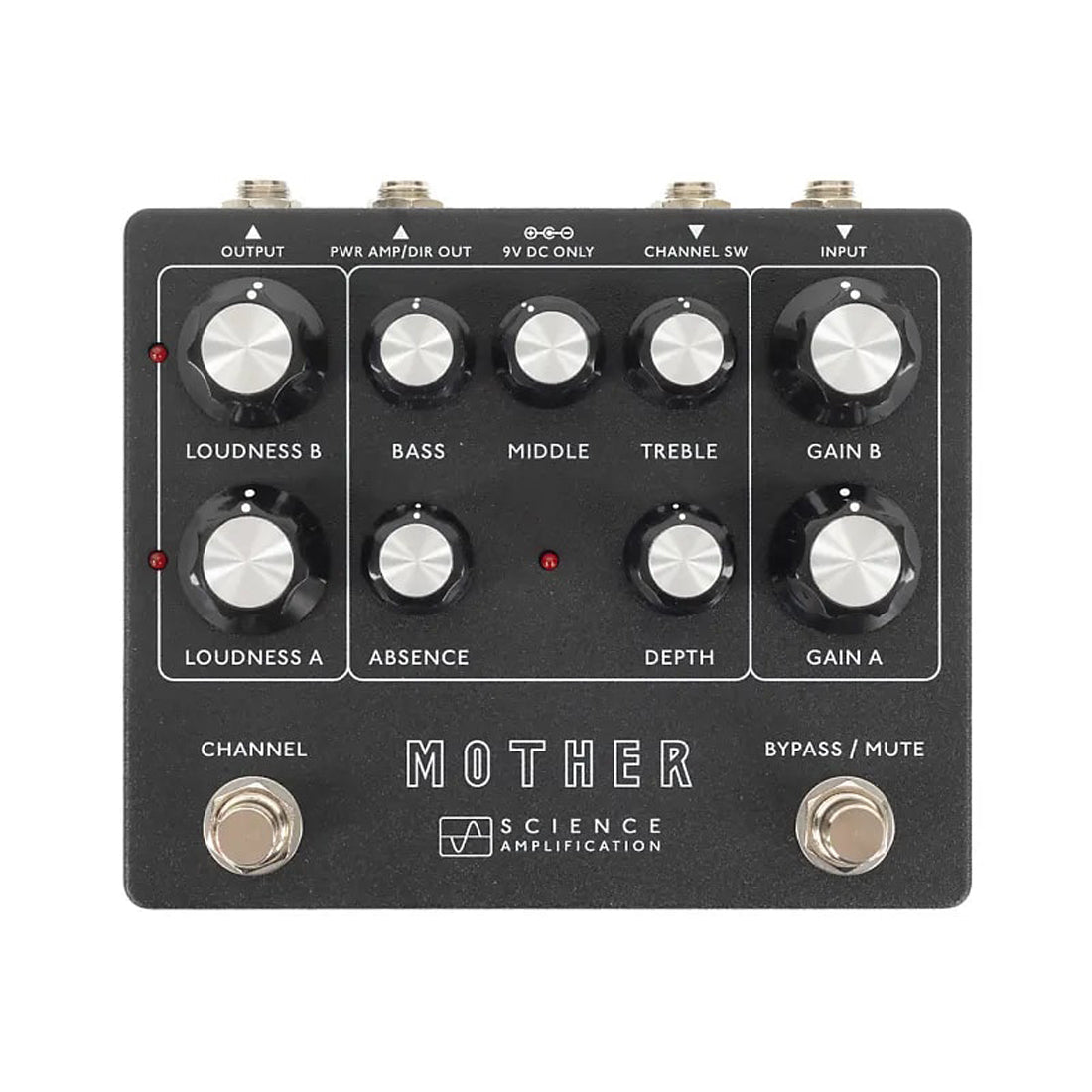 The Mother preamp is a recreation of its dual channel tube-powered namesake, but refined into pedal format. Just like the full-fledged amp, the Mother preamp is our modern take on the vintage high-wattage sounds of the early 70’s with added tonal range, control, and a voice all its own. The Mother preamp is designed to work equally well on your pedal board and into the front of your favorite amp, into a power amp, and recording interface/DAW (in conjunction with speaker emulation/IRs). The result is a wide-ranging utilitarian dual channel preamp that can add dimension and versatility to your rig with an eerily convincing Science signature tube tone.
