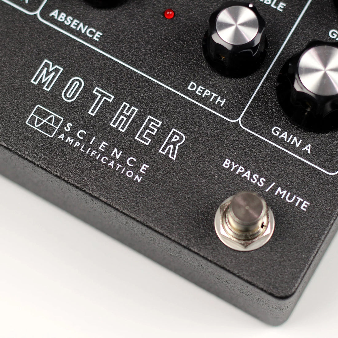 The Mother’s two channels range from a wide open pedal-eating clean sound, to edge-of-breakup, and vintage crunch on Channel A. Taking off from there, Channel B goes through shades of gain into heavier saturation, never losing sight of its fundamental voice. The familiar feeling EQ section can be used for musical tone shaping or transforming the voice of your existing setup. The unique Depth control adjusts pre-drive low end content for tighter or thicker sounds, which can be used to accommodate your guitar’s pickups, the pedal’s overdrive texture, or how the preamp reacts to preceding pedals. The Absence control fine tunes the high frequency content at the end of the signal path, providing passive smoothing when turned up, or an active top end boost when turned down.