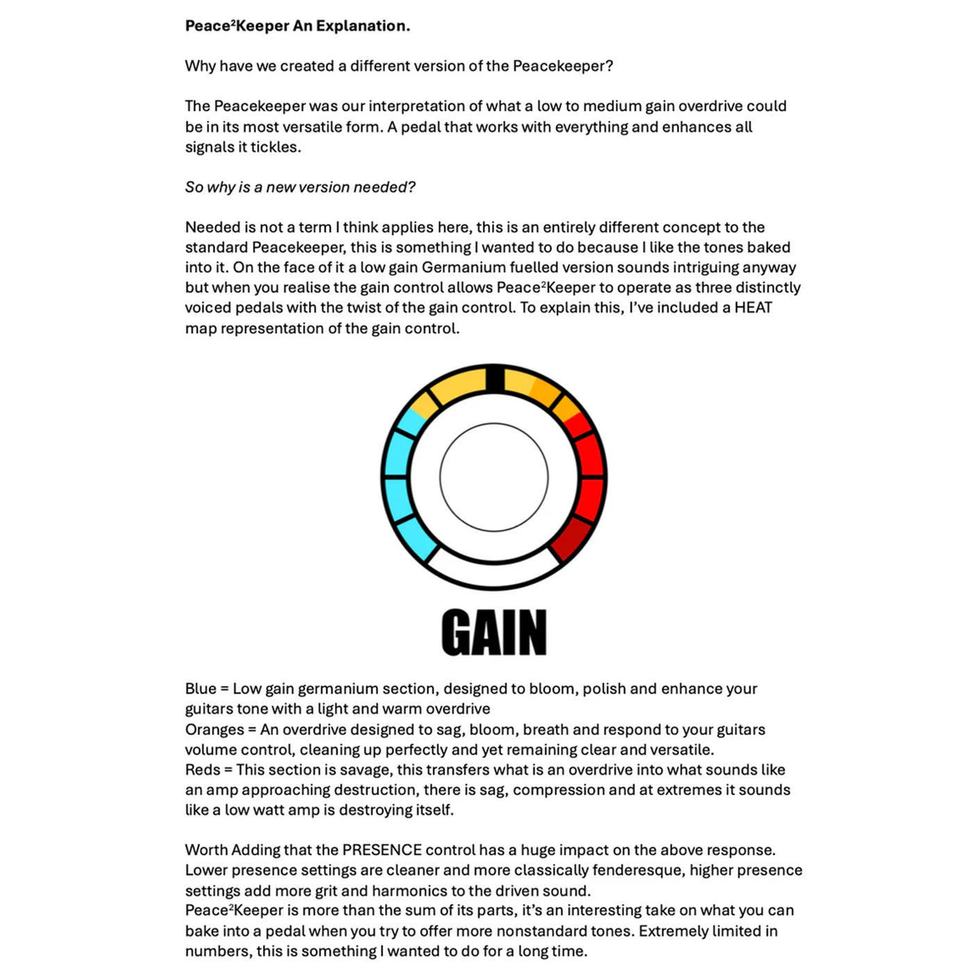 I feel like now more than ever, we need a bit more peace so how about peace squared. The Peace²keeper GE Low Gain Edition came from a want to take our loved low-mid gain overdrive, and make it even lower gain. We’ve slightly modified the circuit, taking it from an asymmetrical clipped drive to a symmetrically clipped drive and replaced some of those diodes with some NOS Germanium diodes I had from my pre-ThorpyFx days. I’ve been holding onto them for something special, and decided that this was it. I only have a finite number of these diodes so once this batch has gone, we won’t be making any more. The fundamentals of the circuit and controls are the same, it’s just something a little special I wanted to do to the Peacekeeper. The two together sound fantastic stacked so even if you already have an original, it’s worth getting both.