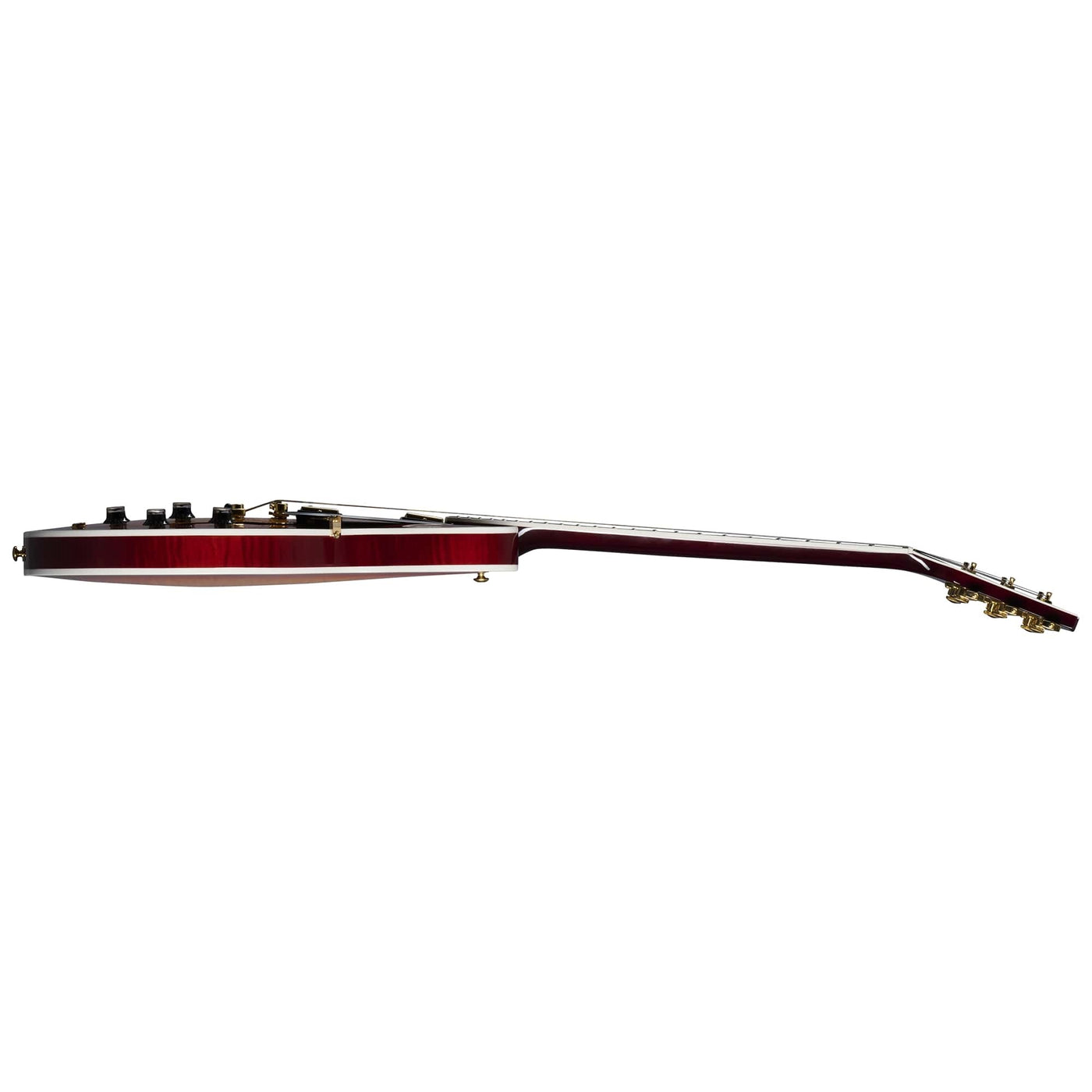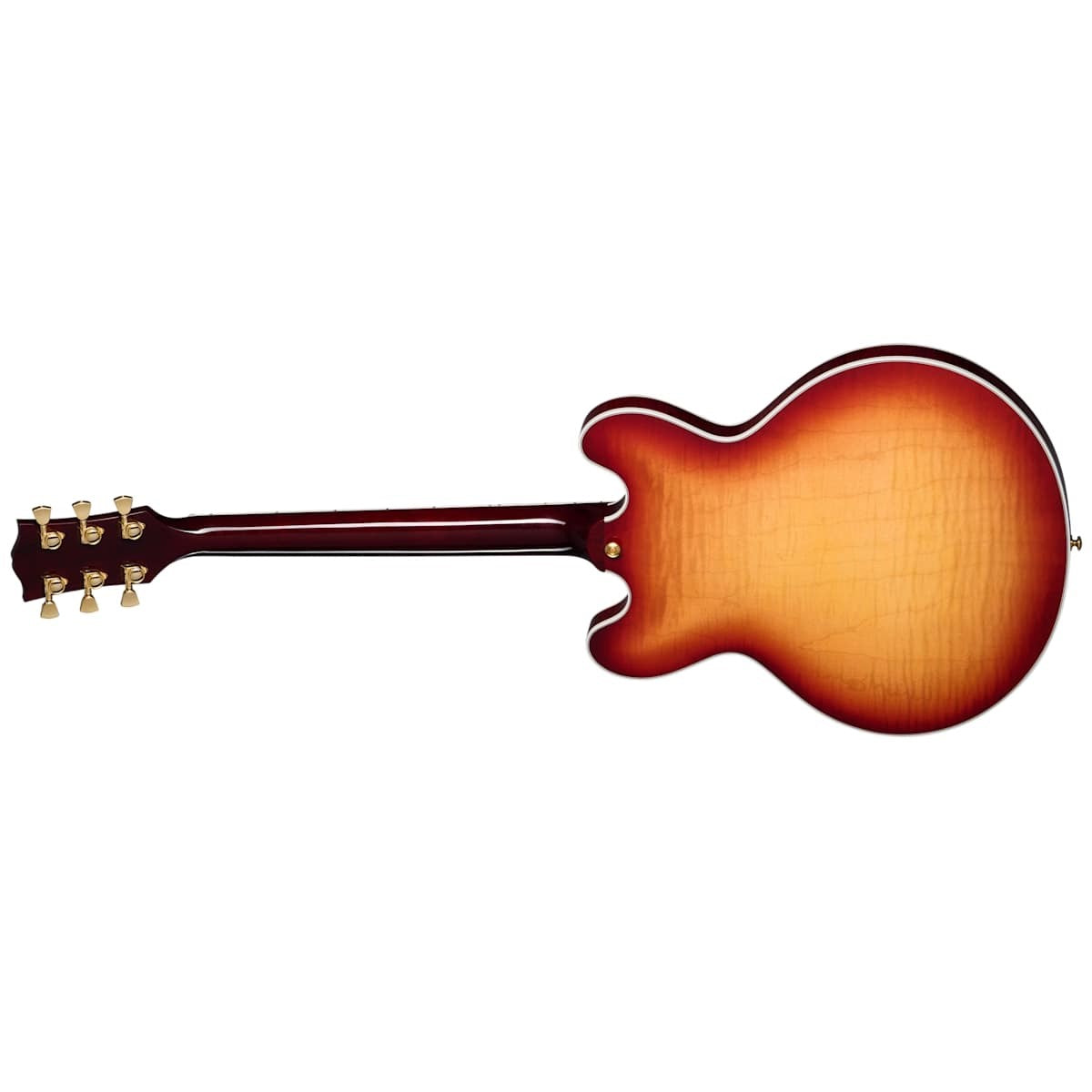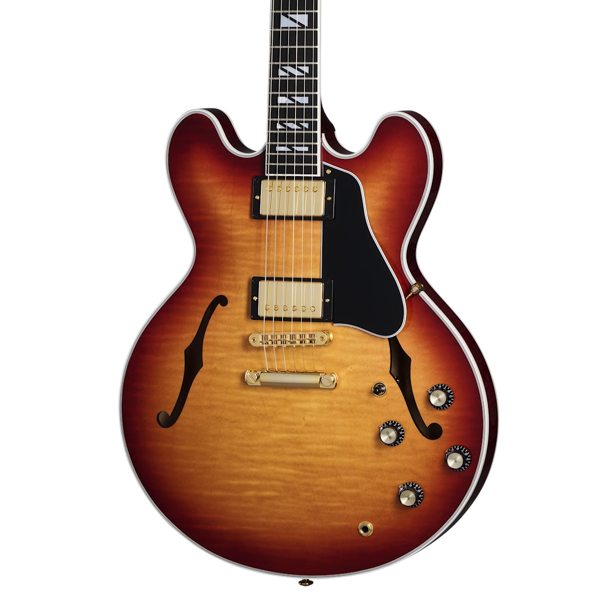 The Gibson ES-335 has always been known as an exceptionally versatile guitar. Regardless of your stylistic preferences or what the gig calls for, it can cover it with aplomb. The ES Supreme expands on that legendary versatility and adds features that take the ES to new heights of beauty, including a 3-ply body with a AAA figured maple top, Super Split Block mother-of-pearl neck inlays, gold hardware, and a striking new mother-of-pearl headstock inlay inspired by a design from the 1940s that was discovered in the Gibson archives. Smooth playability is ensured by the mahogany neck with its Rounded C profile and compound radius ebony fretboard, while the famous ES sonic versatility is enhanced even further with the addition of push/pull volume pots for coil tapping the Burstbucker Rhythm Pro and Burstbucker Lead Pro + pickups. The Ebony 3-pickup exclusive adds in a Burstbucker Mid Pro for an even wider tonal range. It all comes together to make this the ES that reigns supreme. A hardshell case is also included.