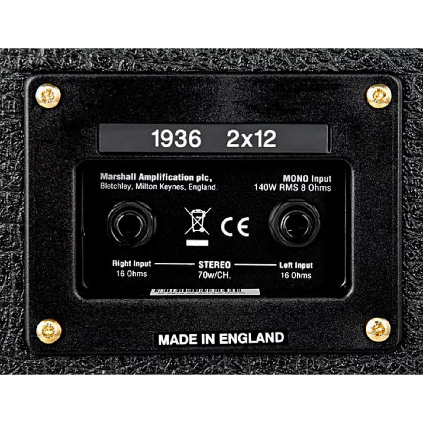 • Speaker configuration: 2x12"• Power handling: 140W MONO, 70W STEREO• Speaker model: 2 x Celestion G12 Vintage (16 ohm, 70w)• Unit impedance: 8 ohm Mono, 16 ohm Stereo