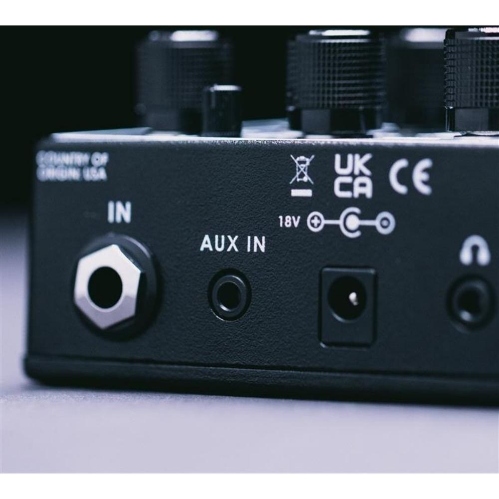 • Clean and transparent Preamp• 4-Band EQ – Bass, Treble, Low Mid, Hi Mid• Footswitchable “Deep” and “Bright” broadband boost• Headphone out and Aux in for silent practice• Studio Quality DI w/ Pre and Post as well as Ground Lift• Lightweight and compact design• Power: 18v power supply• Inputs: One 1/4″ jack, One Aux In• Outputs: One 1/4″ jack, One XLR (nominal output – 14 dBu balanced), Headphone Out• Headphone amplifier with mix control, 1/8" aux-in, and 1/8" headphone out• 18 volt operation. DC power source not included.
