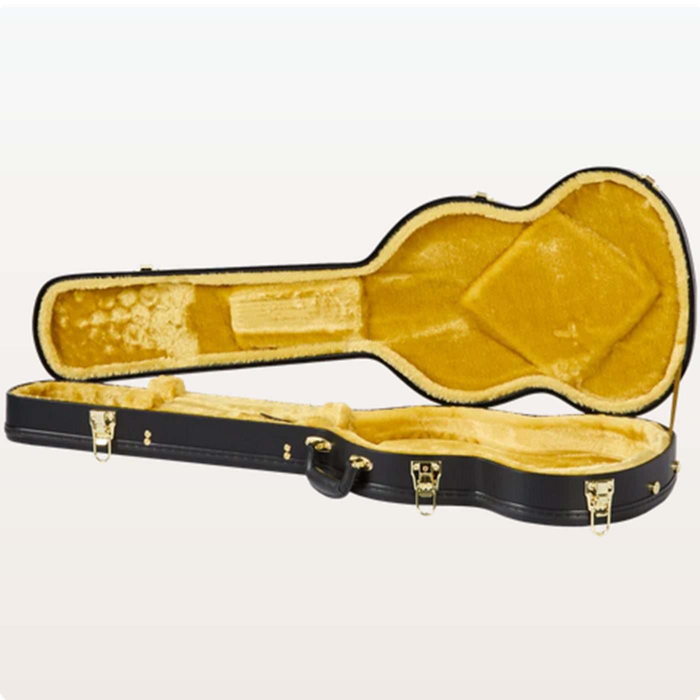 • Case: Black Hardshell with Goldenrod Interior, Gold Hardware, and Inspired by Gibson Custom Logo