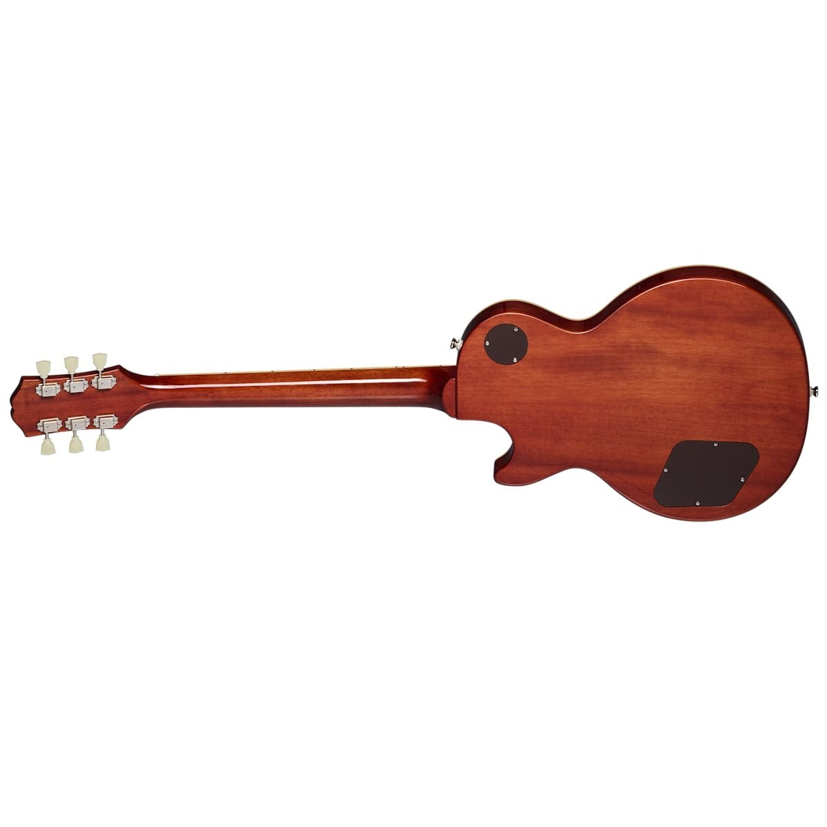 Mahogany body with maple cap, mahogany neck with Custom '59 Rounded C profile and laurel fretboard, rare Copper Iridescent finish, Epiphone P-90 PRO pickups, CTS pots, Mallory capacitors, 50s wiring, brown/pink hardshell case.