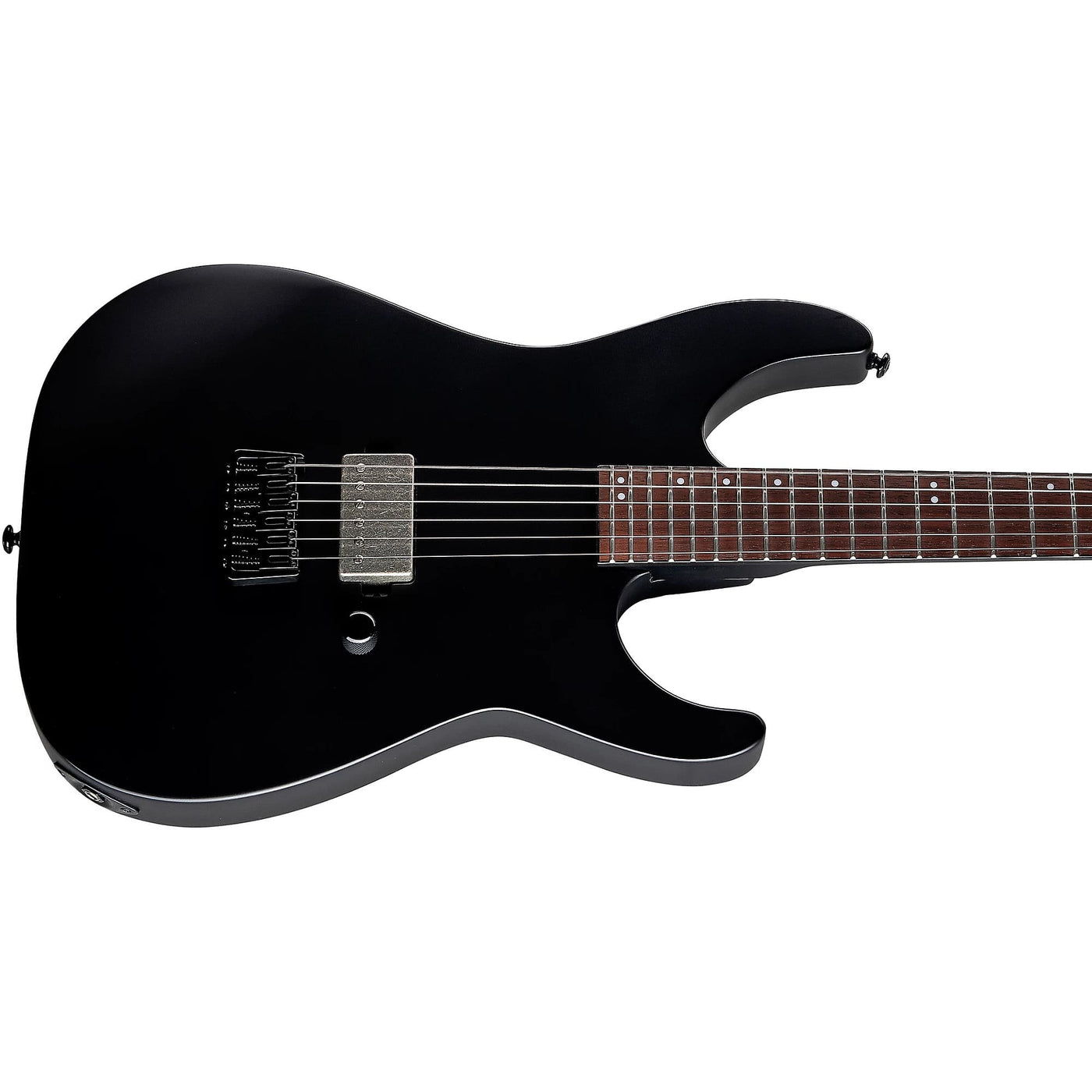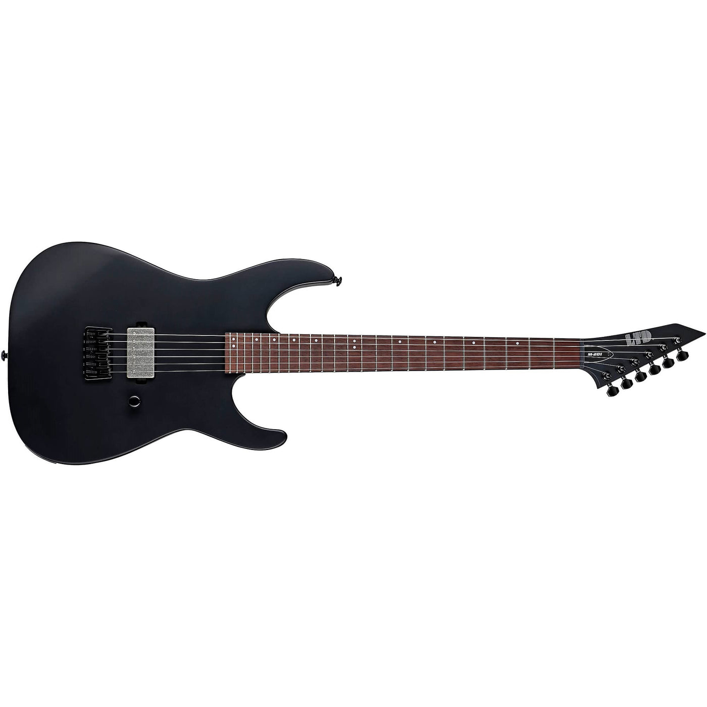 The LTD M-201 allows you to get a guitar designed for serious performances without spending serious money. Based on the classic ESP M (Mirage) shape, the M-201 offers the speedy feel and great bolt-on tone as many other guitars in the LTD M Series, with a mahogany body and comfortable extra-thin U-shaped three-piece maple neck. Its roasted jatoba fingerboard has black binding, offset dot inlays and 24 extra-jumbo frets. Components on the M-201 include an LTD fixed hardtail bridge with string-thru-body. The star of the show in the M-201 is its single direct-mount ESP LH-150B pickup with antique nickel cover. The LH-150B's hot output is perfect for rock and metal, but can also be split for single-coil sounds with the push-pull volume knob.