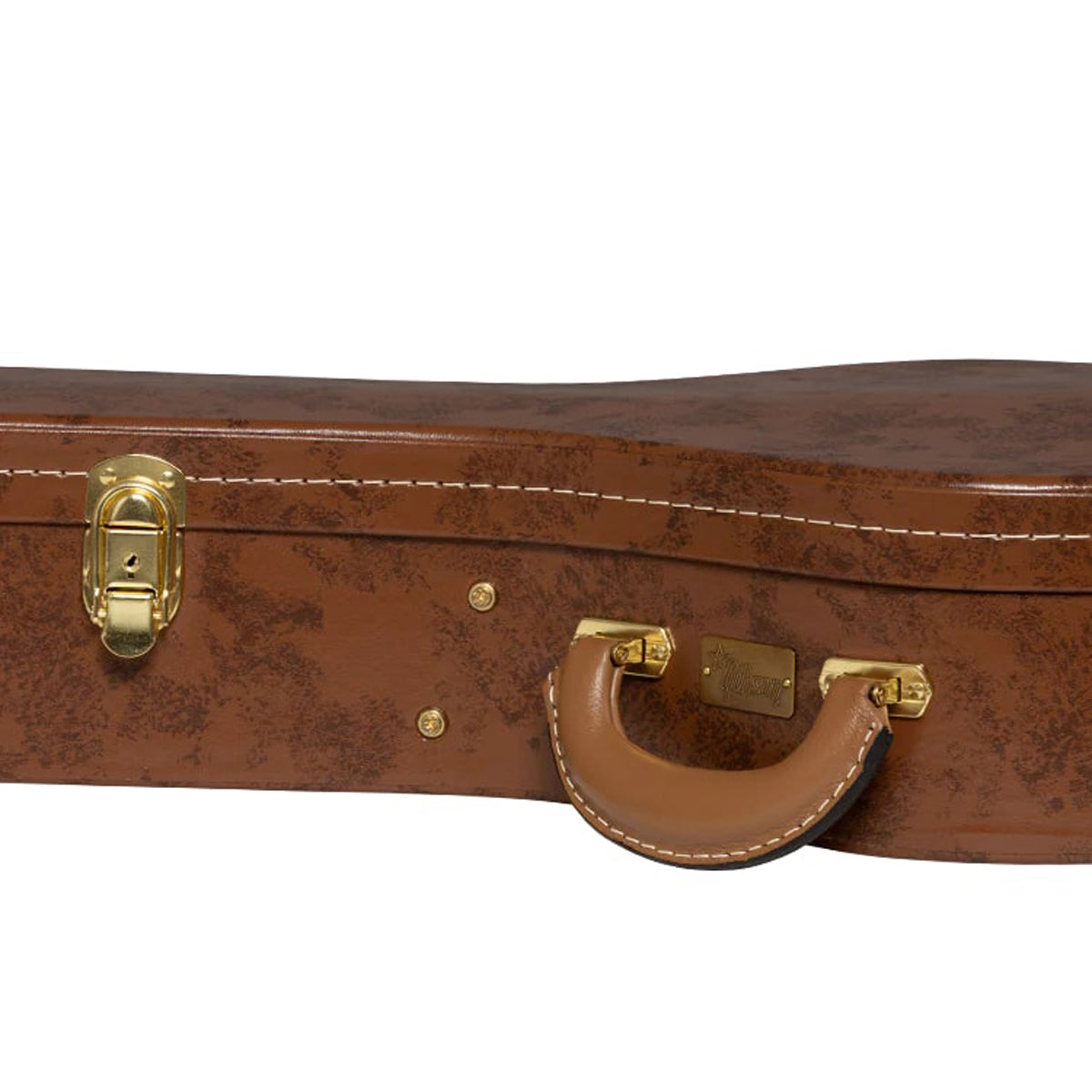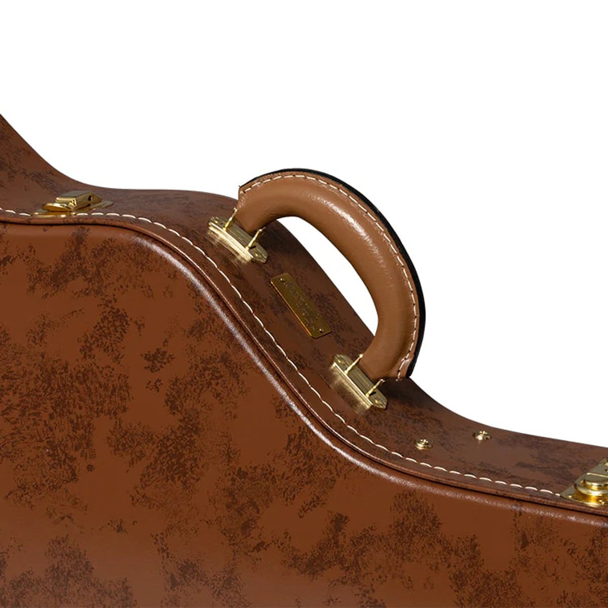 • Designed to fit: 50s ES Models (specifically 50s ES-335 & ES-355s, but will fit other ES models such as ES-330, ES-345, & Lucille)• Exterior: Mottled Brown Tolex• Interior: Pink Plush• Historic C-shaped handle• Historic style latches with one locking latch• Accessory compartment with ribbon pulltab• Internal dimensions: 43 7/8” total interior length, 23 3/8” body length, 11 1/4” upper bout width, 9 1/2” waist width, 15 5/8” lower bout width, 3 1/2” depth