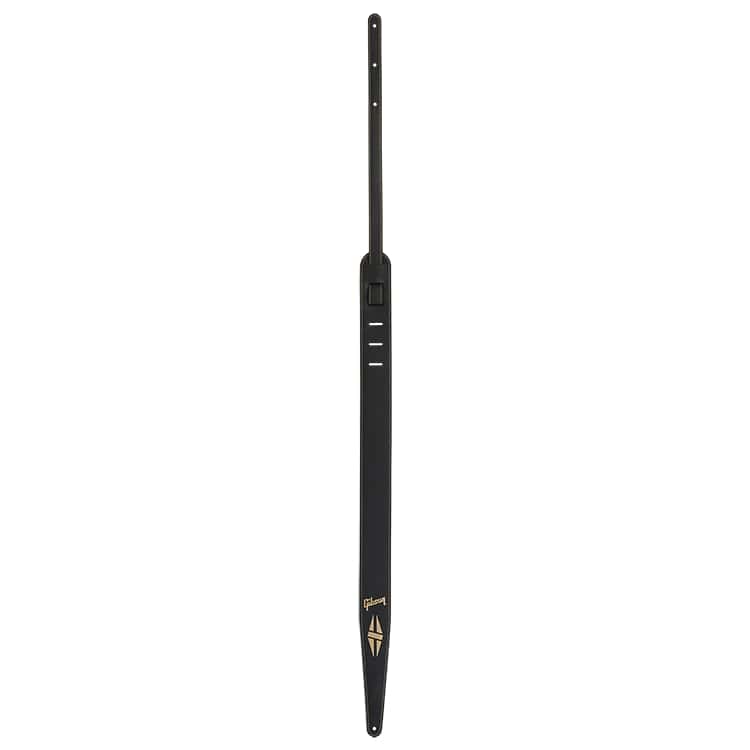 This sleek strap sports the Gibson Diamond. Handmade in the USA with genuine leather, premium materials, and premium hardware. 2.25" Width, 37"-56" Adjustable Length
