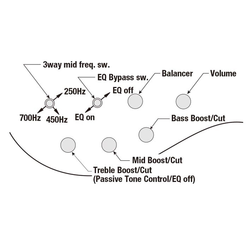Ibanez Custom Electronics 3-band EQ w/EQ bypass switch & Mid frequency switch