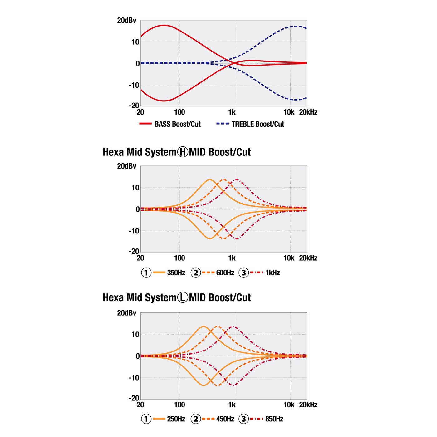The Hexa Mid system offers players the flexibility to choose from two mid-range banks, each containing three distinct frequency points, for a total of six. Its exceptional versatility and user-friendly interface help players achieve their ideal bass sound.