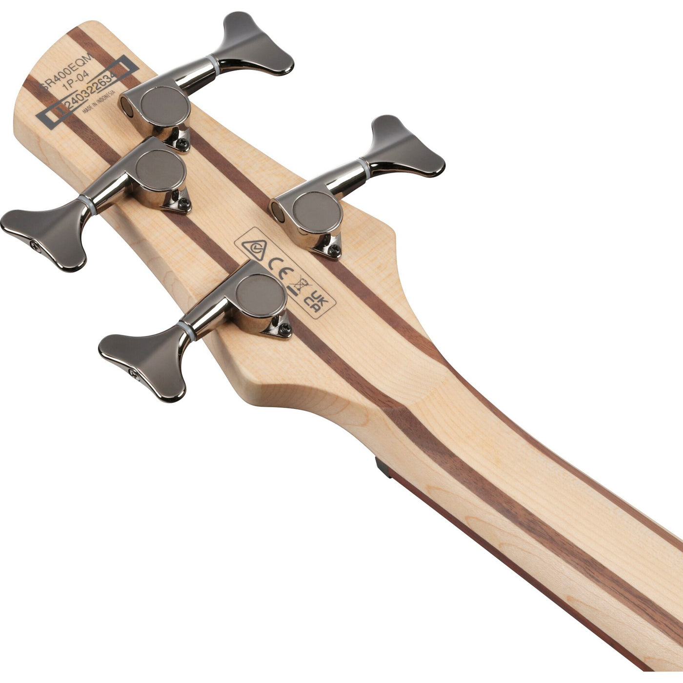 The SR400EQM is a handsome 4-string bass designed for the advanced player. A stunning Quilted Maple adorns the bass, Nyatoh body. Other features include a sturdy 5-piece Maple / Walnut SR4 neck, a Jatoba Fingerboard, and an Accu-cast B300 bridge for superior string vibration transfer and precise intonation.
