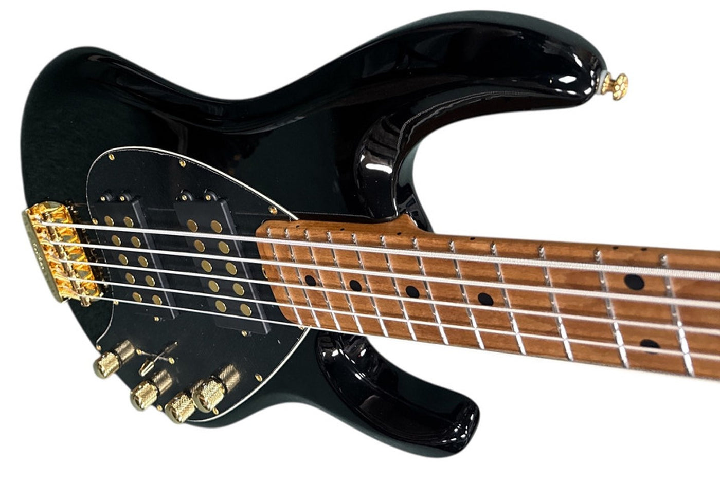 • Model: StingRay 5 Special• Size: 13-3/8" wide, 1-5/8" thick, 45-3/4" long • Body Wood: Select Hardwoods• Body Finish: High gloss polyester (Except Black Rock - Matte)• Bridge: Vintage Music Man® top loaded chrome plated, steel bridge plate with vintage nickel plated steel saddles• Pickguard: Black, White, Mint, or White Pearloid (dependent on body color)• Scale Length: 34" (86.4 cm)• Neck Radius: 11" (27.9 cm)• Headstock Size: Only 9" (22.9 cm) long• Frets: 22 - High profile, wide, Stainless Steel• Neck Width: 1-3/4" (44.5 mm) at nut 2-3/4"" (69.9 mm) at last fret• Neck Wood: Select roasted maple neck• Fingerboard: Fretted - Maple, Rosewood, or Ebony (dependent on body color)• Neck Finish: Gunstock oil and hand-rubbed special wax blend• Neck Colors: Standard – Natural with finished headstock• Tuning Machines: Custom Music Man, lightweight with tapered string posts and ergonomic clover design• Truss Rod: Adjustable - no component or string removal• Neck Attachment: 5 bolts - perfect alignment with no shifting; Sculpted neck joint allows smooth access to higher frets• Electronic Shielding: Graphite acrylic resin coated body cavity and aluminum lined pickguard• Controls: 3-band active preamp with 18 volts of headroom; vol, treble, mid, bass• Switching: Single Pickup - 3-way lever pickup selector; Dual Pickup - 5-way lever pickup selector• Pickups: Standard - Single Humbucking with Neodymium magnets; Optional - Dual Humbucking with Neodymium magnets• Left Handed: No• Strings: 45w-65w-80w-100w-130w (Regular Slinky Bass #2836)