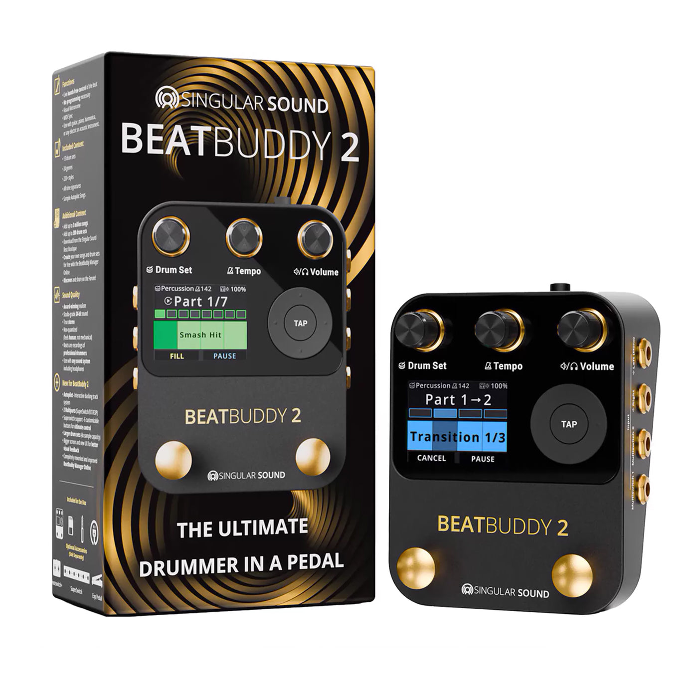 BeatBuddy is the award-winning pedal for musicians to add live, responsive drums to their playing. More than 150,000 players around the world use it to practice, write, and perform with a drummer that never misses a cue. With a simple foot tap, you can add fills, transitions, song part changes, drum breaks, accent hits, intros/outros, double/half time, cowbell, and more — all in real time. You can even navigate set lists hands-free.