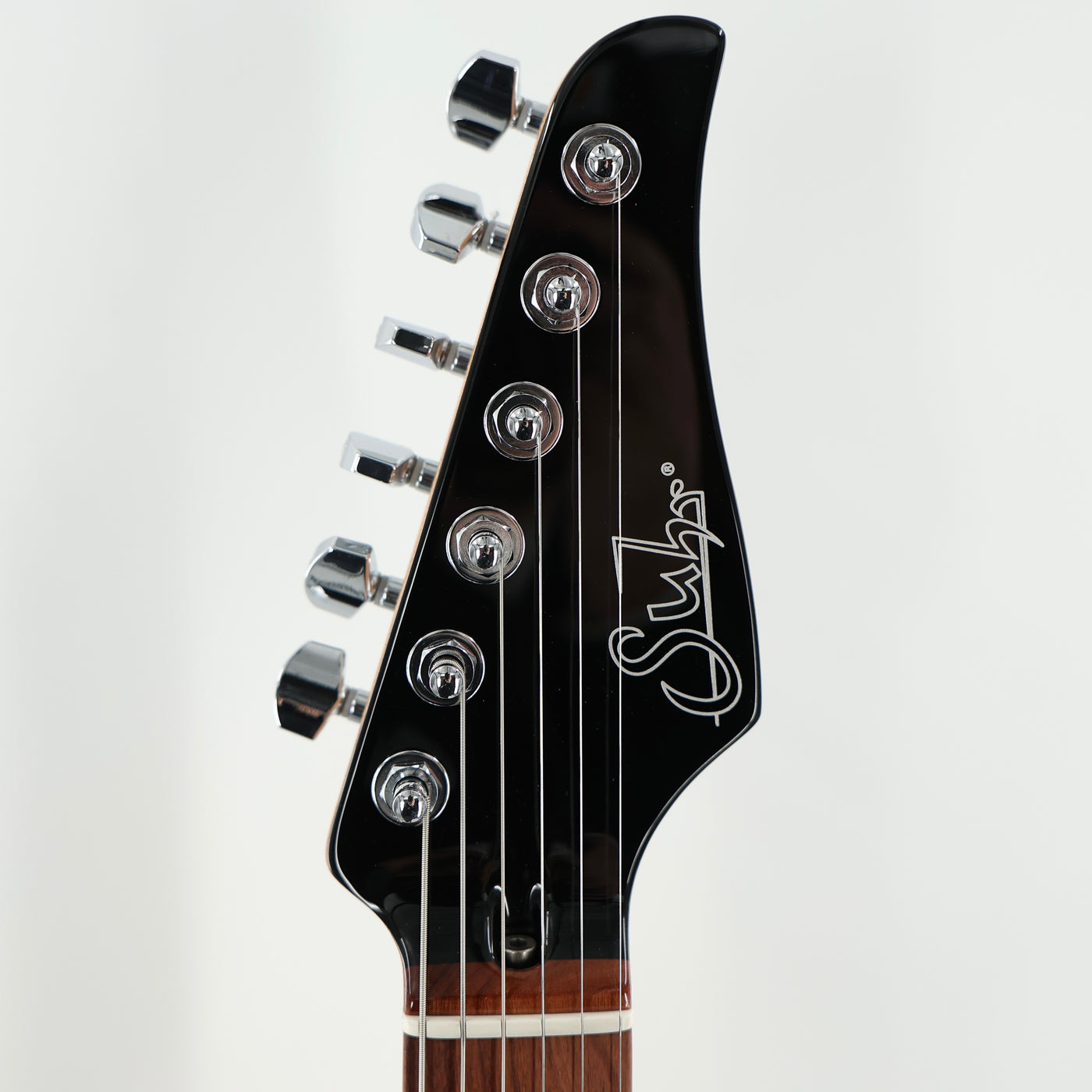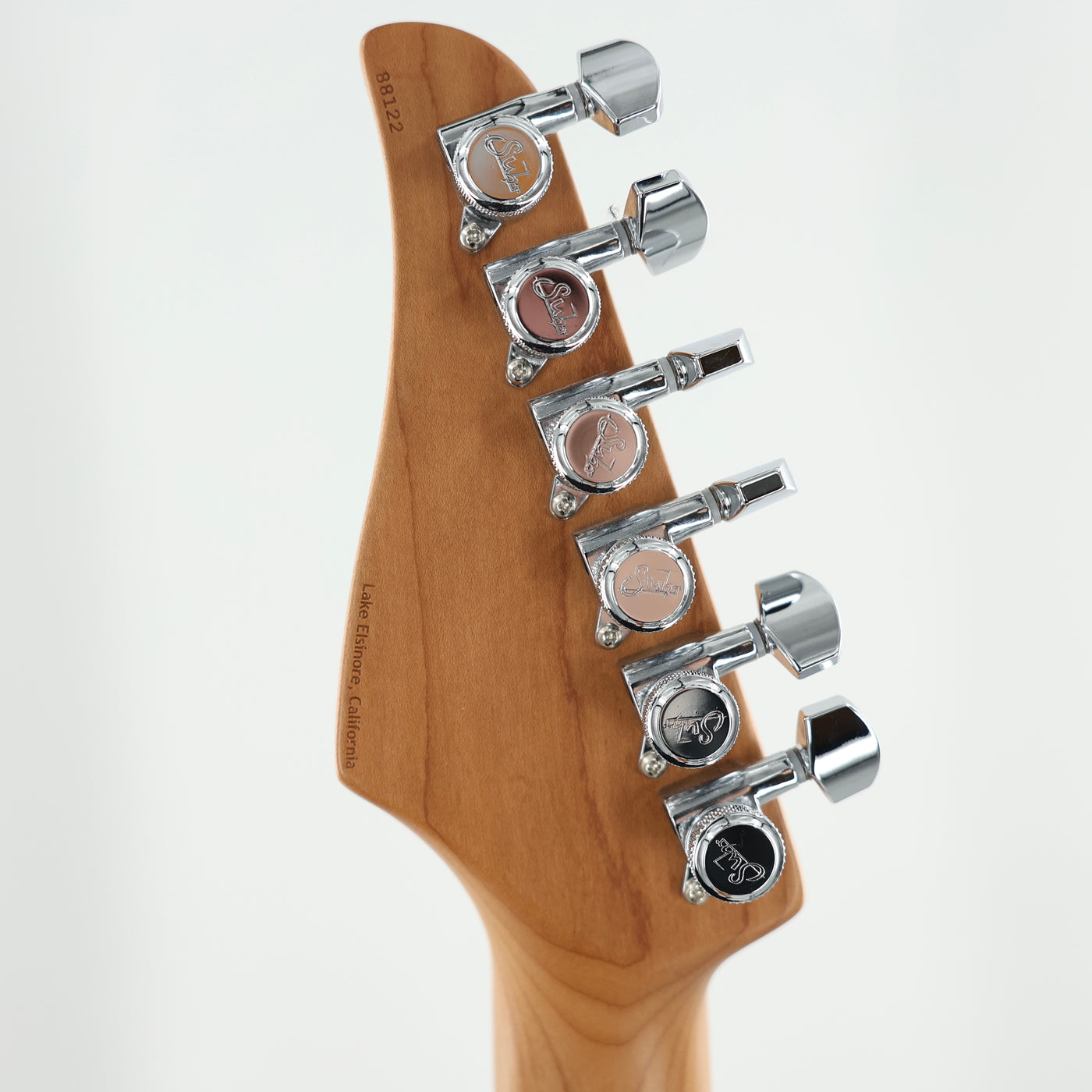 The Modern Plus features a roasted maple neck with pau ferro fingerboard. The Modern Plus retains many of the original specifications of the Modern Pro including the sleek elliptical neck profile, balanced asymmetrical body, innovative neck heel and stunning flame maple top. Proprietary Suhr locking tuners and the Gotoh 510 tremolo provides superior tuning stability.