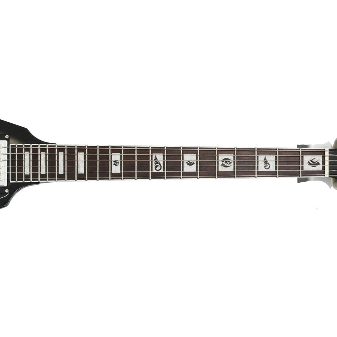 Woodrite Guitars, in collaboration with Dirty B himself, proudly presents the ‘Dirty B’ Signature Vagabond, a high-performance guitar that delivers on both craftsmanship and tone. The instrument’s mahogany body and bound mahogany neck are paired with a sleek Macassar ebony fingerboard, featuring distinctive custom “Mastogyph” inlays. Its silverburst finish adds to the guitar’s striking appearance, while stainless steel frets, Tonepros hardware, and Grover tuners provide the durability and precision expected in a professional-grade instrument.