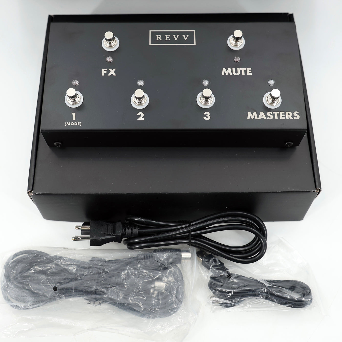 • Design: Tube• Channels: 3: Blue clean, Green crunch, Purple gain. Blue & Green share EQ. • Power Rating: 50W (adjustable to 10W)• Preamp Tubes: 4 x 12AX7• Power Tubes: 2 x EL34• Clean Tone Controls: Shared 3-band EQ, Level, Bright Switch, Wide Switch• Crunch Tone Controls: Shared 3-band EQ, Level, Gain, Bright Switch, Drive Switch (3 voices)• Gain Channel Tone Controls: Independent 3-band EQ, Level, Gain, Bright Switch, Cut Switch, Fat Switch, Aggression Switch (3 voices)• Global Tone Controls: Master Volume 1 & 2, Presence, Depth, Reverb switch, Noise Gate switch.• Utility Controls: Reverb Level, Direct Output Level, Virtual Cabinet Rotary Selector, Noise Gate Threshold.• Direct Capabilities: Stereo Two notes Torpedo-Embedded reactive load & dynIR Virtual Cabs• Preset Virtual Cabs: 6 w/ rotary switch, 128 w/ MIDI presets• Additional Features: Pre/Post switch, digital reverb, noise gate, ground lift, speaker/load switch• Outputs: 2x 1/4" 4 ohm, 2x 1/4" 8 ohm, 1x 1/4" 16 ohm (cabinet); Stereo XLR (Torpedo out)• Headphones: 1/4" jack headphone amp w/ adjustable level & clip warning LED• Effects Loop: Yes, buffered• MIDI I/O: 2 x Type B (in & thru)• Other I/O: 1 x 5-pin (Revv cabinet lighting), Revv footswitch jack• Connectivity I/O: USB Type B & Bluetooth for Virtual Cabinet & preset adjustment• Bias: Easy-access adjustable fixed bias w/ easy-access fuses• Construction: Baltic birch tolexed headshell• Power Cable: Standard IEC AC cable• Dimensions H x W x D: 12" x 19.5" x 10.12"• Weight: 31 lbs• Footswitch: 4-button, programmable, included