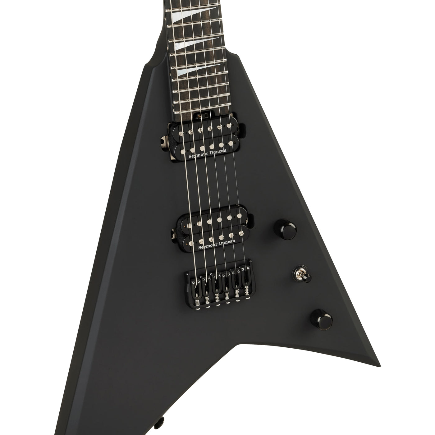 • Headstock: Reverse Jackson Pointed 6-In-Line• Neck Materia: l3-Piece Maple• Neck Finish: Satin Color Matched• Neck Shape: Speed Neck• Neck Construction: Neck-Through-Body with Graphite Reinforcement• Fingerboard Radius: 12" to 16" Compound Radius (304.8 mm to 406.4 mm)• Fingerboard Material: Ebony• Position Inlays: Inverted Mother of Pearl Sharkfin• Side Dots: Luminlay• Number of Frets: 24• Truss Rod: Dual-Action with Wheel• String Nut: Graph Tech TUSQ XL• Nut Width: 1.6875" (42.86 mm)• Nut Material: Graph Tech TUSQ XL• Fret Size: Jumbo Stainless• Scale Length: 25.5" (648 mm)