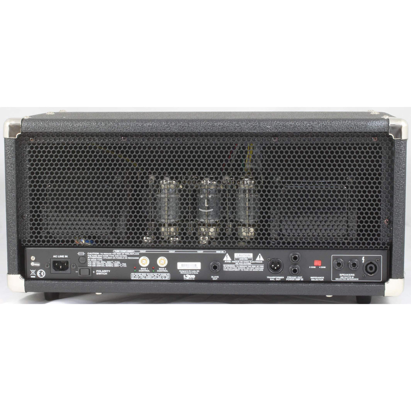 • Padded Input• 1/4" and Neutrik Speakon Outputs• Complete Tube Protection• User Bias Adjustment• Preamp: Tube (2 x 12AX7)• Driver Tube(s): 1 x 12AX7, 2x 12AU7 • Power Amp: Tube (6 x 6550)• RMS Power Output (2 Ohms): 300-Watts • RMS Power Output (4 Ohms): 300-Watts • Tone Controls: 3-Band• Mid Tone Control: 5-Position Selector• Ultra High/Low: Yes • Balanced Line Out: Yes• Preamp Out/Power Amp In: Yes• Slave Output: Yes• Dimensions (W x H x D): 24" x 11.5" x 13"• Weight: 80 Pounds