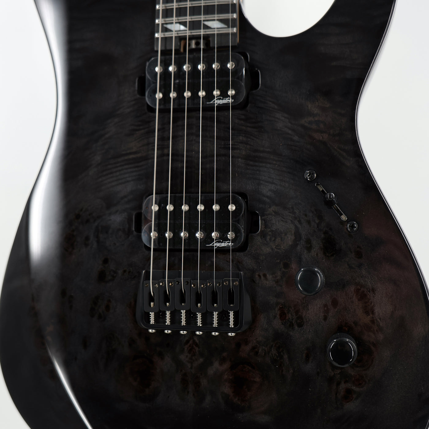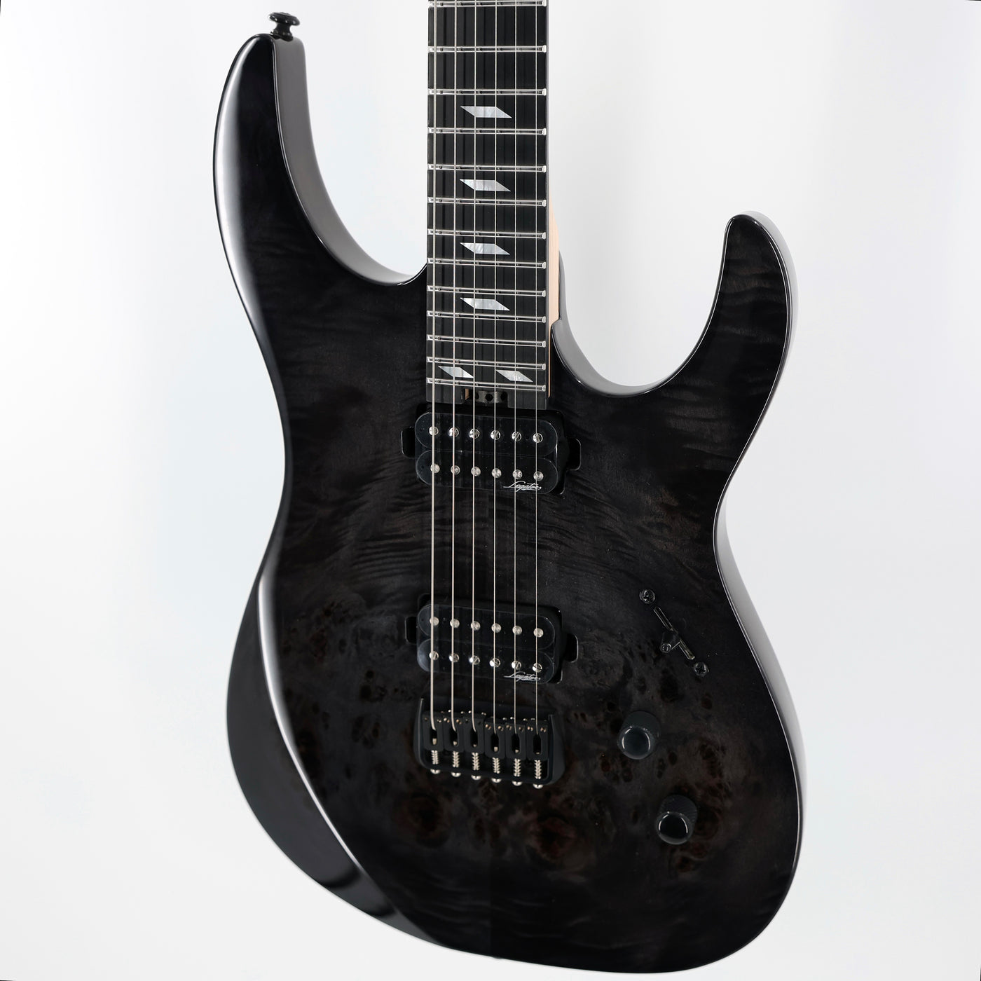 • Bolt-on 3 Piece Maple Neck• 25.5" Scale• 18" Radius Ebony Fingerboard• MOP Diamond Inlays• 24 Medium Jumbo Stainless Steel Frets• Mahogany Body• New Legator Passive Aftershock Ceramic Humbuckers• Master Volume, Tone, 5-way blade switch• Legator Brass Fixed Bridge & Locking Tuners